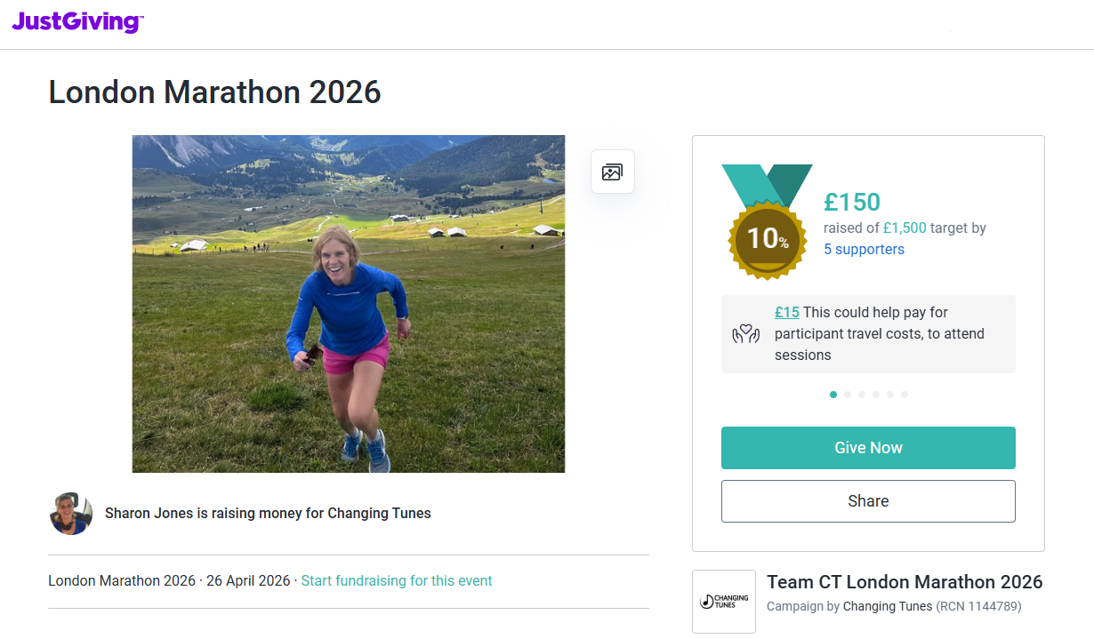I have been given the opportunity to run the 2026 London Marathon for Changing Tunes.